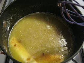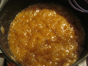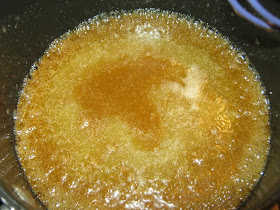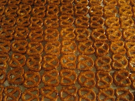 Once the butter has melted, stop whisking and let it come to a bubble. This happens quickly. Reduce the temperature to medium and set your timer for 5 minutes. Let the mixture bubble WITHOUT WHISKING for the entire time. While it's bubbling away, set up your pretzels on a foil lined rimmed cookie sheet (10X16).