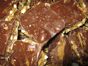 One of my favorite candy bars is a "Take 5", a delicious combo of pretzels, caramel, peanut butter and peanuts covered in chocolate! It is the perfect salty sweet combo! While experimenting with making my own, this was the result... I knew something about making caramel, but instead of the ooey gooey goodness of the Take 5's caramel, it came out more like a brittle. Still delicious! Enjoy!